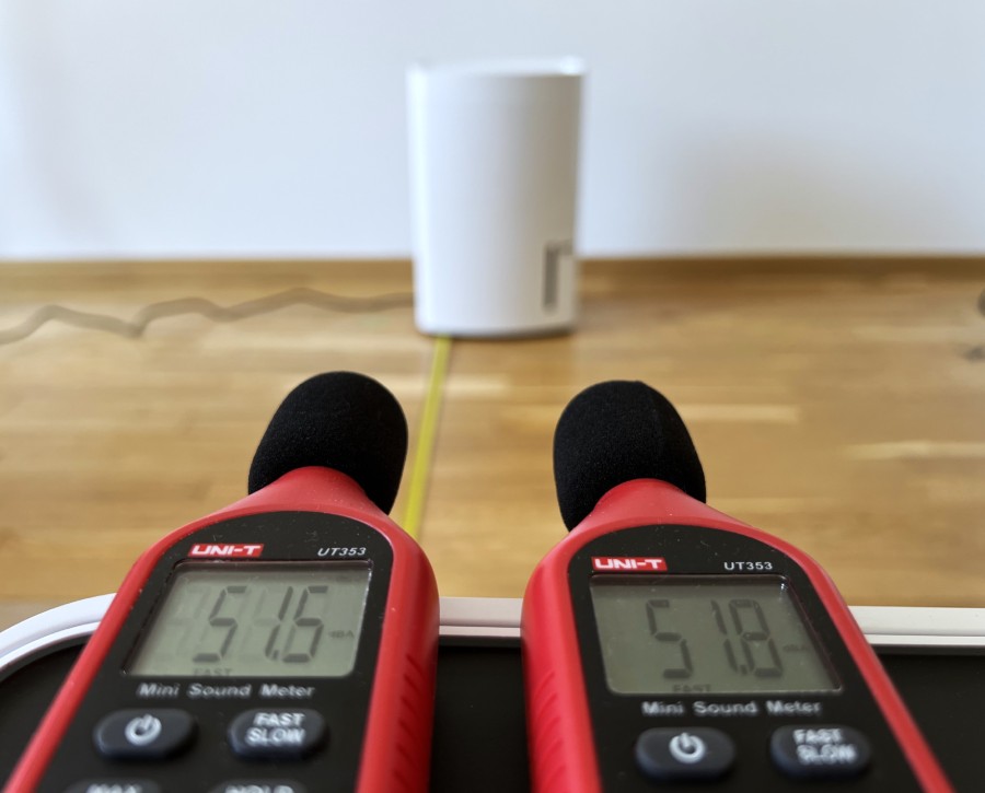 Model Blyss 25 l/ 24 h swoją głośnością nie odstaje od konkurencji. Pomiary wykazały wartości na poziomie 51-52 dB(A) w odległości 1,5 m od urządzenia. Urządzenie jest słyszalne, ale działa równomiernie a hałas nie jest drażniący.