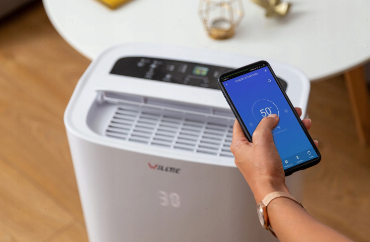 Welltec DHN50 może być sterowany za pomocą przycisków na panelu górnym osuszacza, jak i z poziomu aplikacji mobilnej w telefonie.
