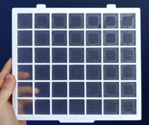Filtr wstępny (siatkowy) to plastikowy stelaż z doczepioną gęstą siatką, wykonaną z włókna sztucznego. Jest to podstawowa warstwa filtrująca powietrze na wlocie urządzenia. Odpowiada za zatrzymywanie dużych zanieczyszczeń takich jak kurz, włosy i sierść.