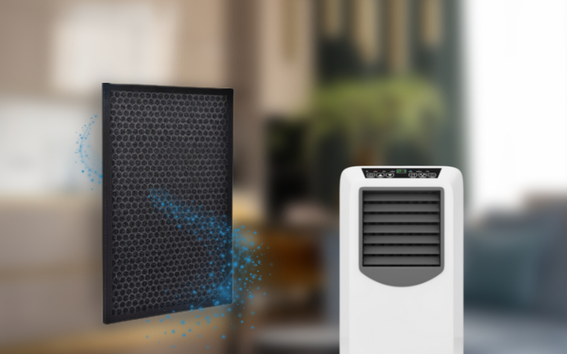 Każdy klimatyzator przenośny posiada filtr wstępny, który zatrzymuje większe zanieczyszczenia. W niektórych modelach producenci zainstalowali również filtr HEPA oraz filtr węglowy, które usprawniają oczyszczenie powietrza.