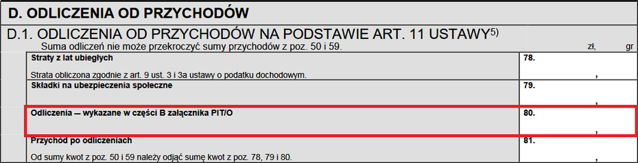 • PIT 28 (3 strona, w rubryce D.1. “Odliczenia od przychodów na podstawie art. 11 ustawy”, poz. 80),