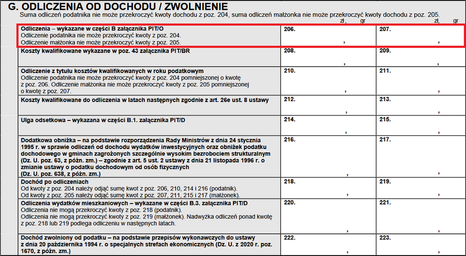 • PIT 36 (4 strona, w rubryce G. “Odliczenia od dochodu / zwolnienie”, poz. 206),